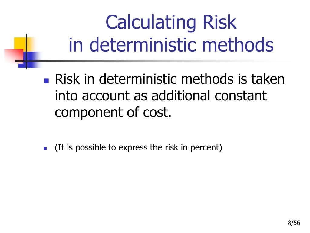 Calculating Risk in deterministic methods • Risk in deterministic methods is taken into account as additional constant component of cost. • (It is possible to express the risk in percent)