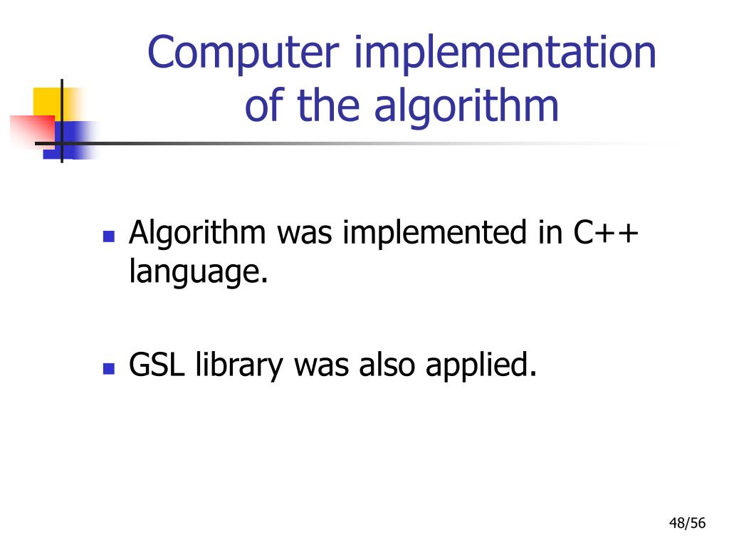 Computer implementation of the algorithm • Algorithm was implemented in C++ language. • GSL library was also applied.