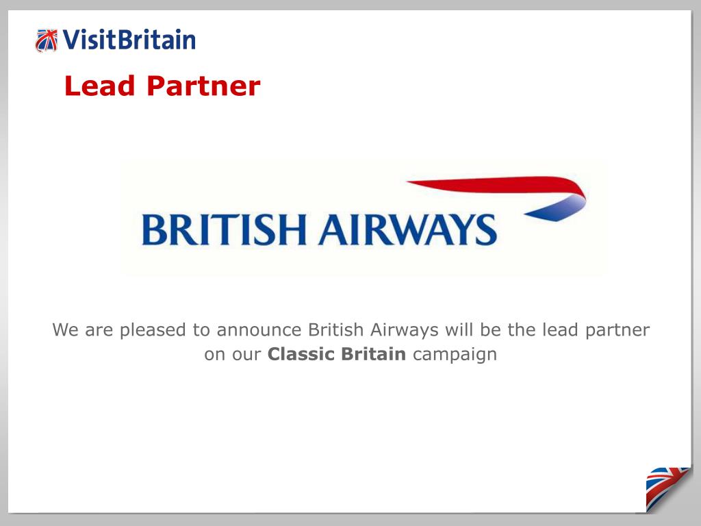 Lead Partner We are pleased to announce British Airways will be the lead partner on our Classic Britain campaign