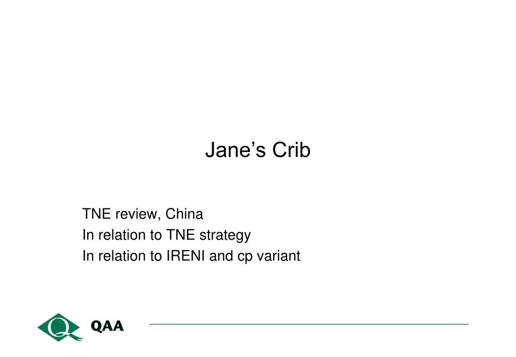 Jane’s Crib TNE review, China In relation to TNE strategy In relation to IRENI and cp variant