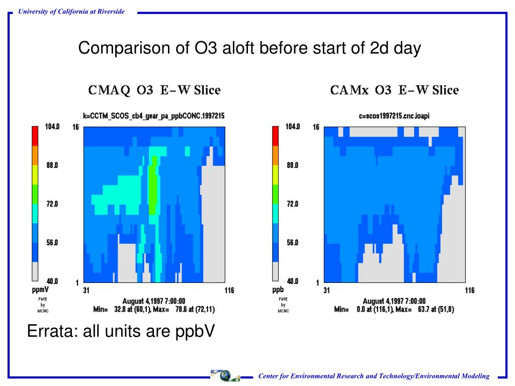 Comparison of O3 aloft before start of 2d day Errata: all units are ppbV