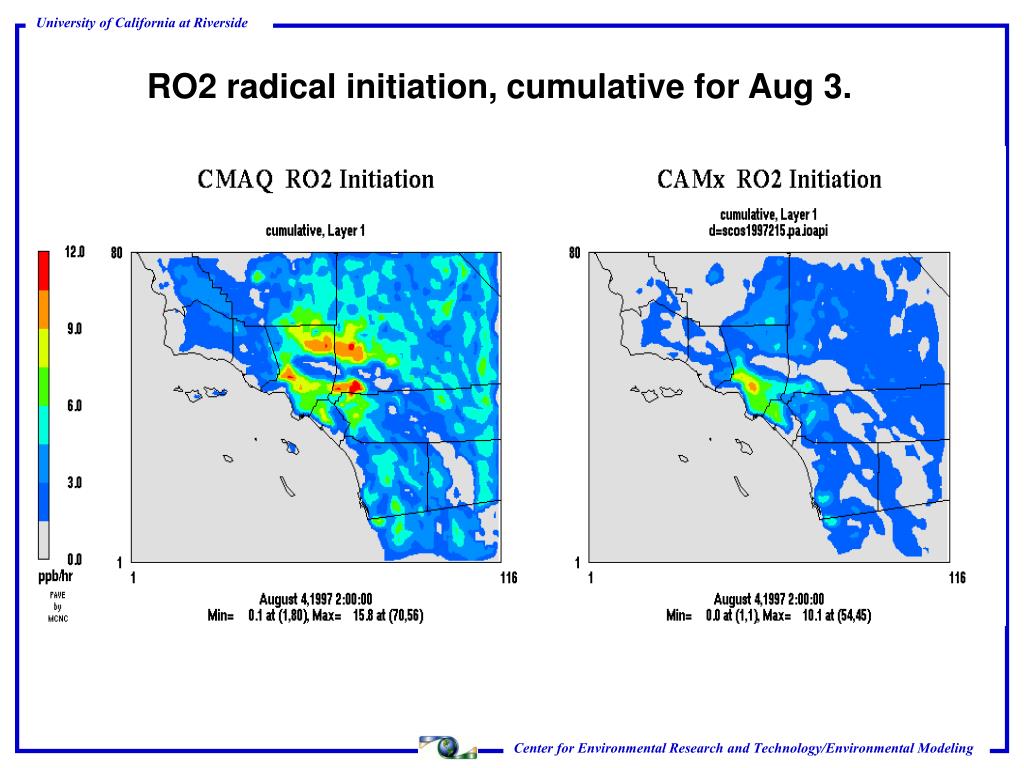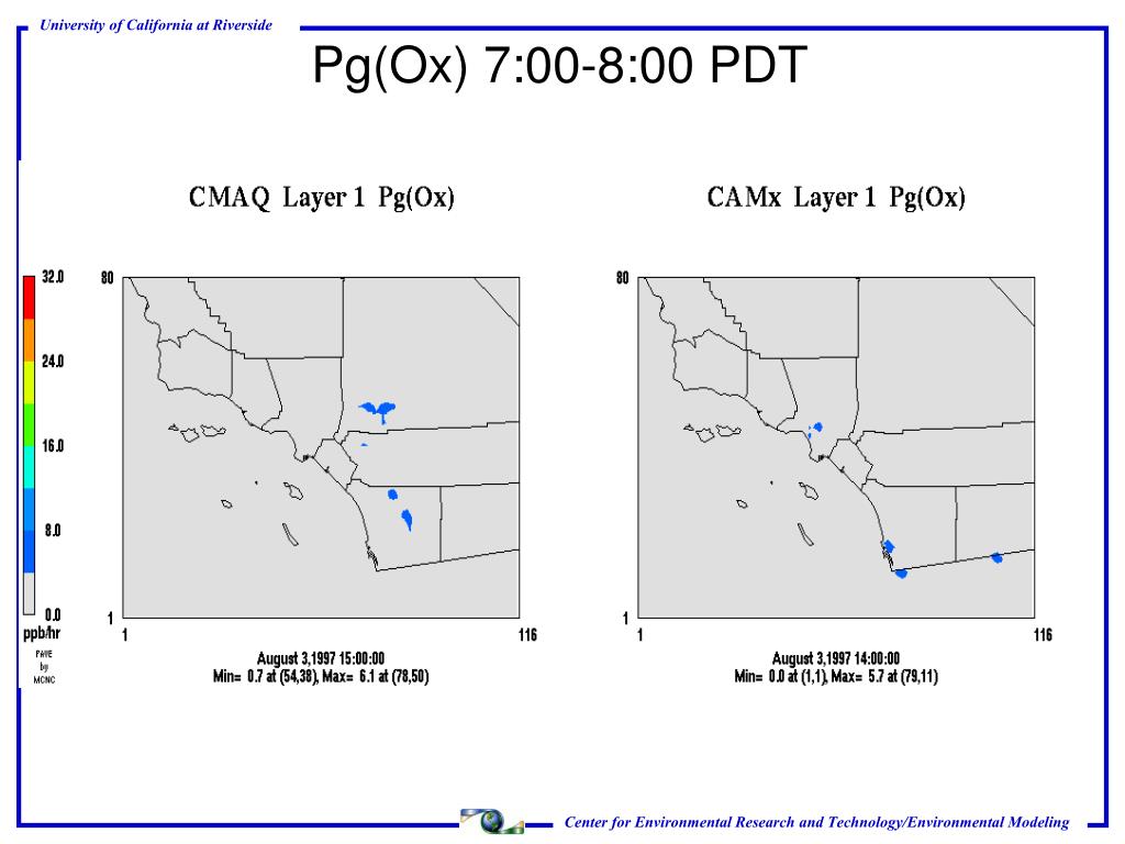 Model Domain and Parameters • 1997 Southern California Ozone Study (SCOS97). Aug 3 to 5, 1997 • CMAQ and CAMx • MM5 16 layers • CB4 chemical mechanism • Gear CMAQ, CMC CAMx • Bott Advection Scheme • No Aerosols • Includes process analysis diagnostic outputs.