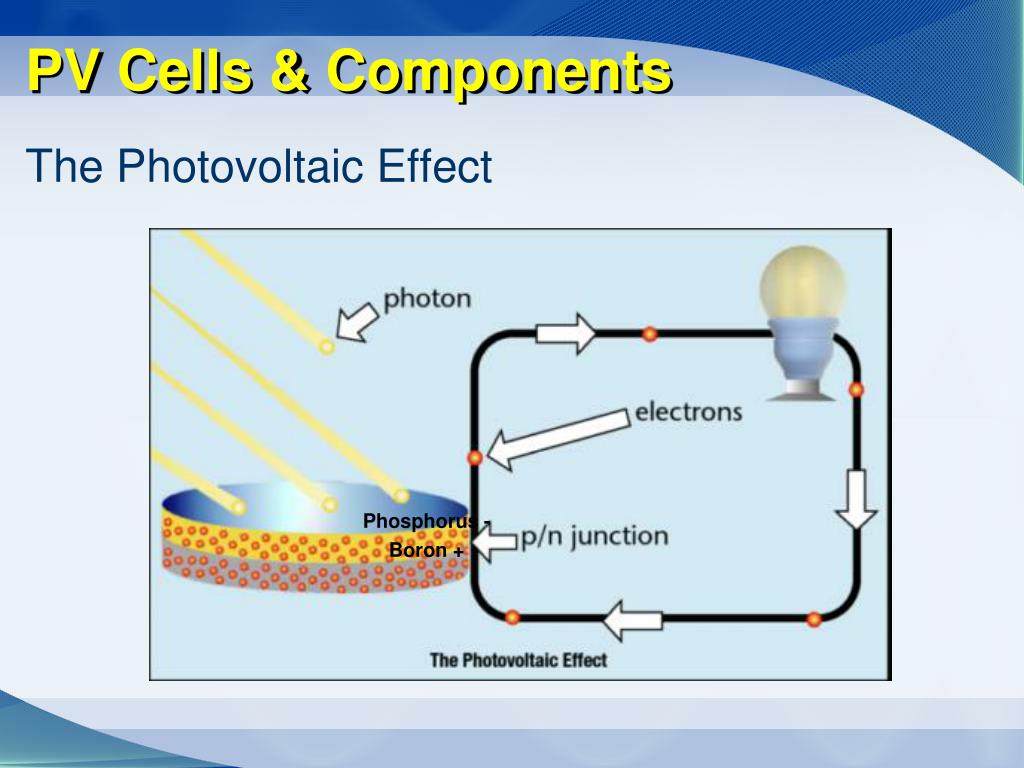 PV Cells & Components The Photovoltaic Effect Phosphorus - Boron +
