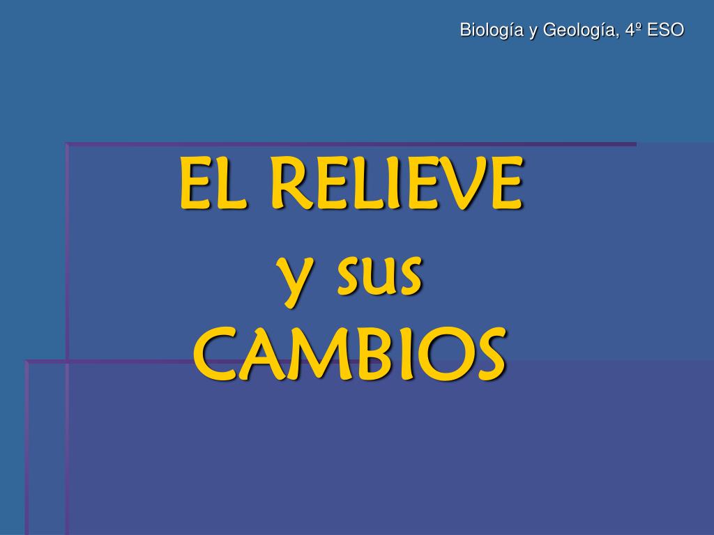 Biología y Geología, 4º ESO. EL RELIEVE y sus CAMBIOS. ¿Pensáis que el relieve de una región varía en el tiempo o permanece sin cambios por siempre…?. Pues sí!! Varía pero MUUY LENTAMENTE…. RELIEVE : Conjunto de las diferentes formas que adopta la superficie terrestre.