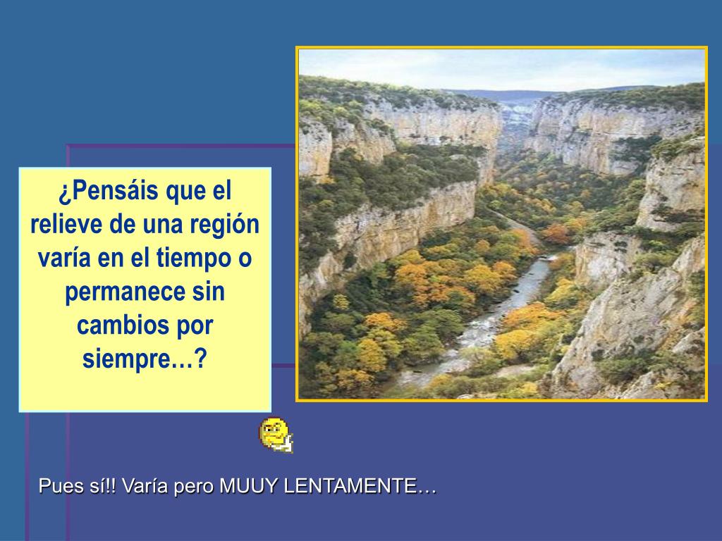 ¿Pensáis que el relieve de una región varía en el tiempo o permanece sin cambios por siempre…? Pues sí!! Varía pero MUUY LENTAMENTE…