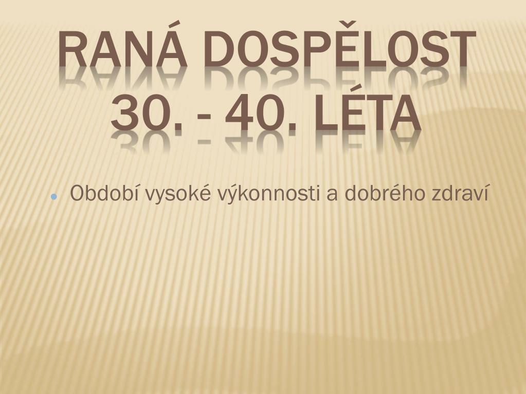 Raná dospělost 30. - 40. léta • Období vysoké výkonnosti a dobrého zdraví