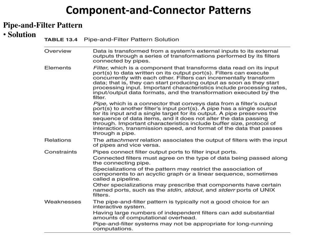 Component-and-ConnectorPatterns • Pipe-and-FilterPattern • Solution