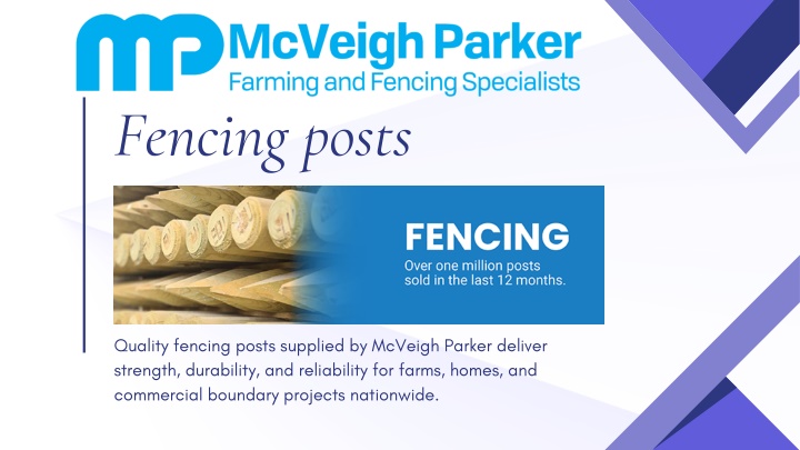 1. Fencing posts Quality fencing posts supplied by McVeigh Parker deliver strength, durability, and reliability for farms, homes, and commercial boundary projects nationwide.