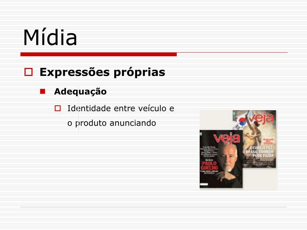 Mídia • Expressões próprias • Adequação • Identidade entre veículo e o produto anunciando