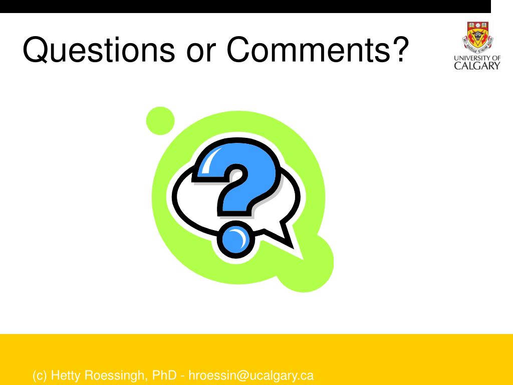 Questions or Comments? (c) Hetty Roessingh, PhD - hroessin@ucalgary.ca