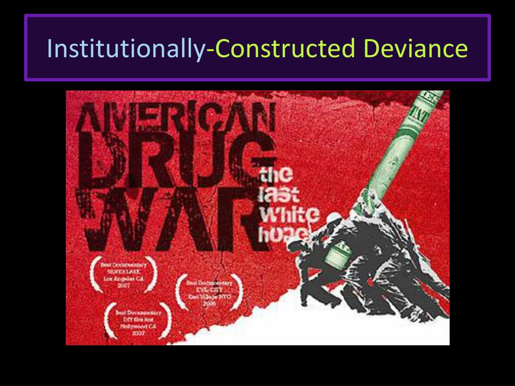 But then how do we “treat” this? • Treating a structural problem individually? • Think about the different people involved with illegal drugs in this country. How do we treat them? Can you map this treatment along lines of social advantage and disadvantage? • Do you agree with Michelle Alexander’s (2010) argument that the “drug war” (as part of mass incarceration more generally) is the “New Jim Crow?”