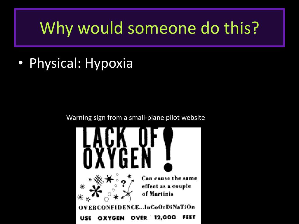Why would someone do this? • Physical: Hypoxia Warning sign from a small-plane pilot website