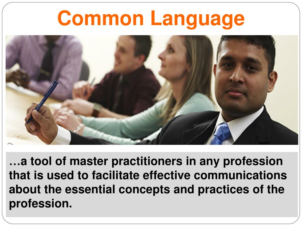 Common Language …a tool of master practitioners in any profession that is used to facilitate effective communications about the essential concepts and practices of the profession.