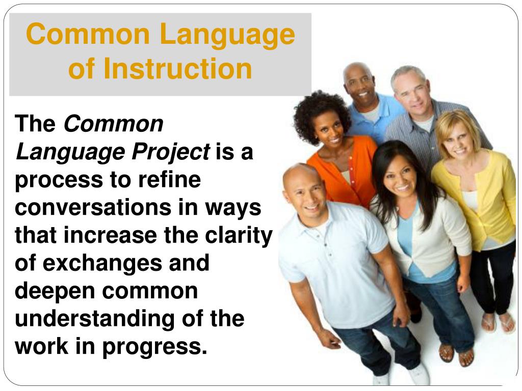 Common Language of Instruction The Common Language Project is a process to refine conversations in ways that increase the clarity of exchanges and deepen common understanding of the work in progress. ADMR TM (p.40)