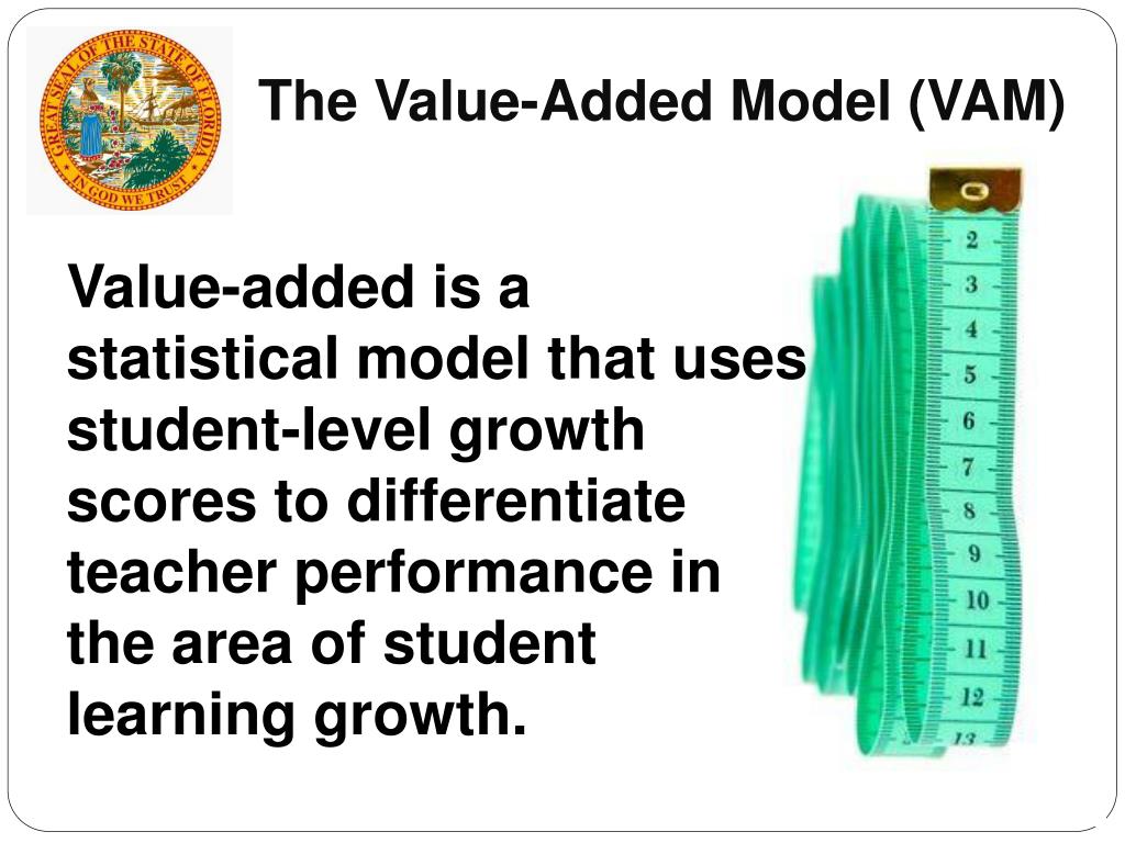 The Value-Added Model (VAM) Value-added is a statistical model that uses student-level growth scores to differentiate teacher performance in the area of student learning growth.
