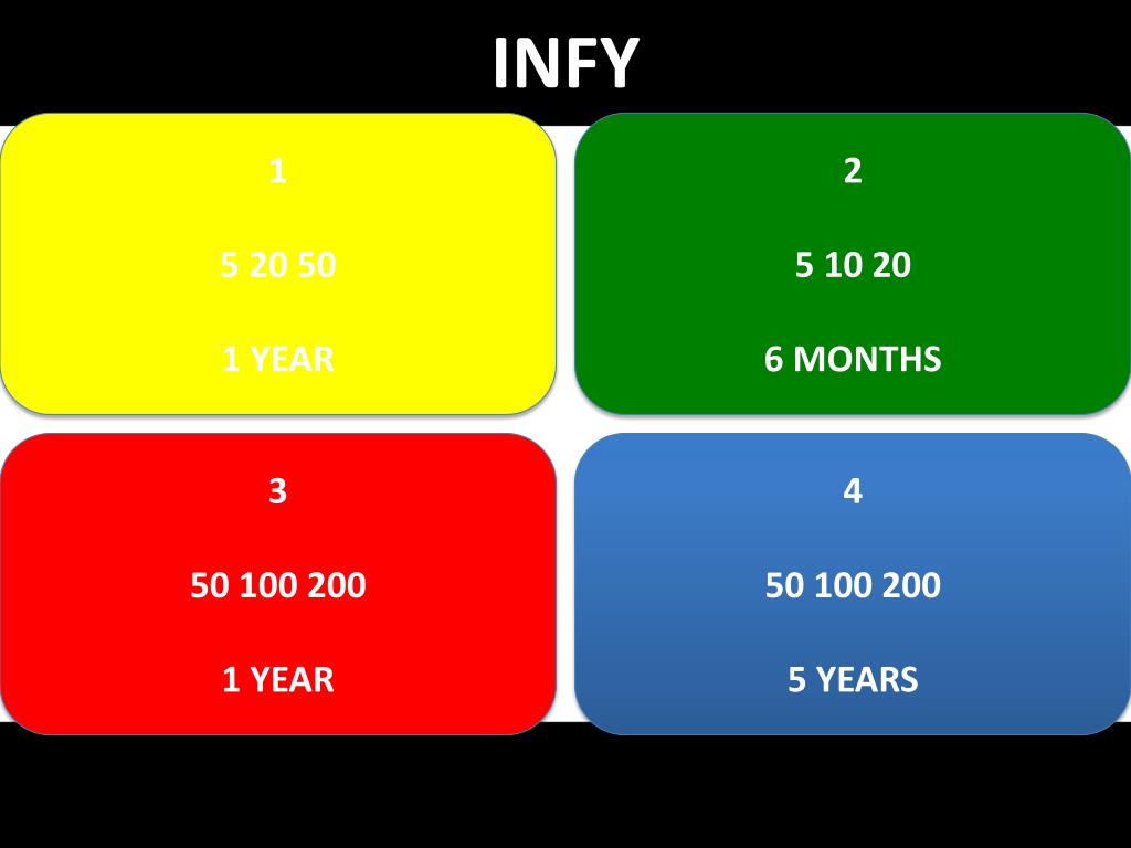 ? INFY • 1 • 5 20 50 • 1 YEAR 2 5 10 20 6 MONTHS • 10 • 3 • 50 100 200 • 1 YEAR • 4 • 50 100 200 • 5 YEARS