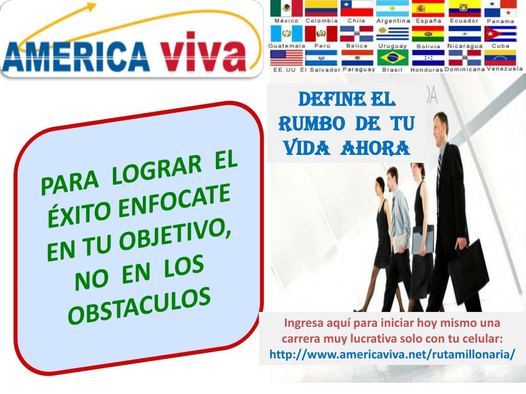 DEFINE EL RUMBO DE TU VIDA AHORA PARA LOGRAR EL ÉXITO ENFOCATE EN TU OBJETIVO, NO EN LOS OBSTACULOS Ingresa aquí para iniciar hoy mismo una carrera muy lucrativa solo con tu celular: http://www.americaviva.net/rutamillonaria/