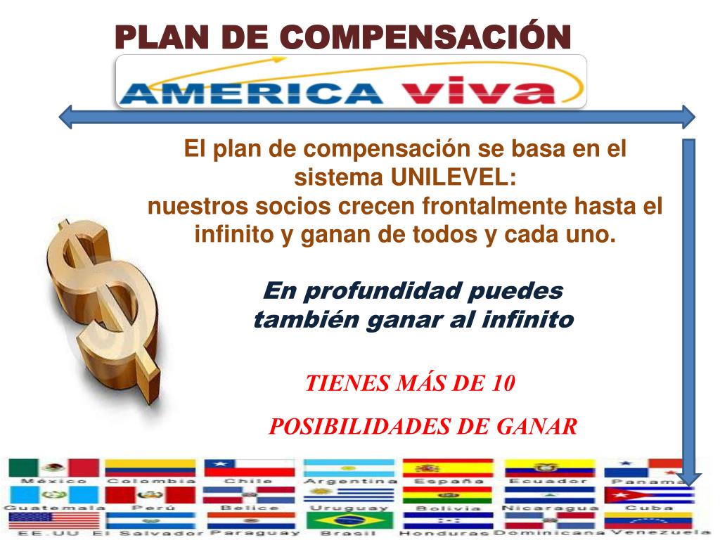 PLAN DE COMPENSACIÓN El plan de compensación se basa en el sistema UNILEVEL: nuestros socios crecen frontalmente hasta el infinito y ganan de todos y cada uno. En profundidad puedes también ganar al infinito TIENES MÁS DE 10 POSIBILIDADES DE GANAR
