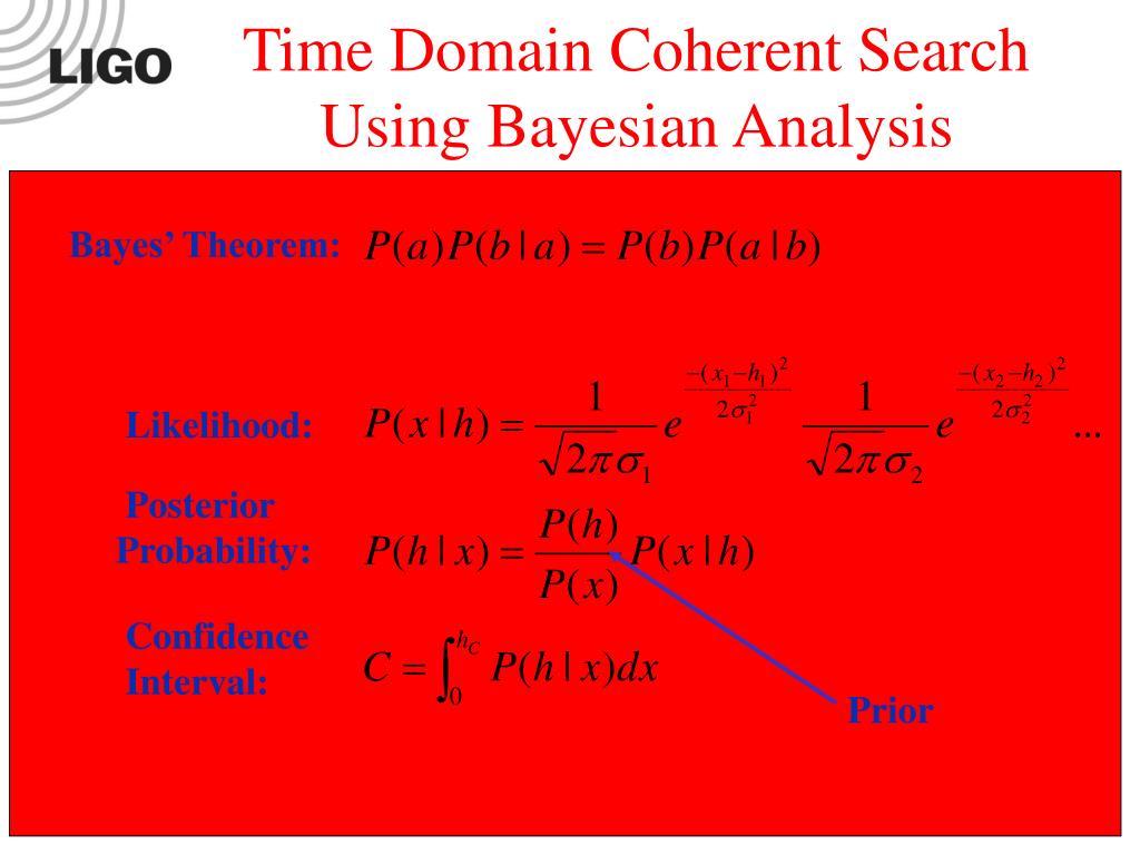 Time Domain Coherent Search Using Bayesian Analysis Bayes’ Theorem: Likelihood: Posterior Probability: Confidence Interval: Prior LIGO-G050492-00-W