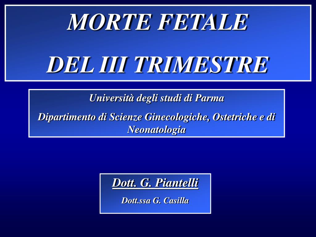 MORTE FETALE DEL III TRIMESTRE Università degli studi di Parma Dipartimento di Scienze Ginecologiche, Ostetriche e di Neonatologia Dott. G. Piantelli Dott.ssa G. Casilla