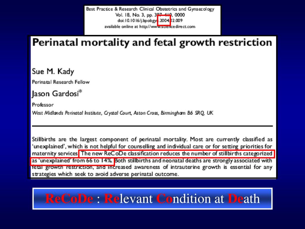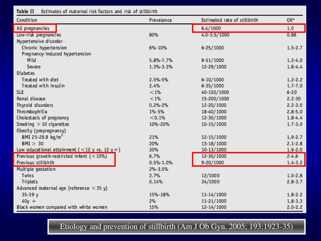 Etiology and prevention of stillbirth (Am J Ob Gyn. 2005; 193:1923-35)