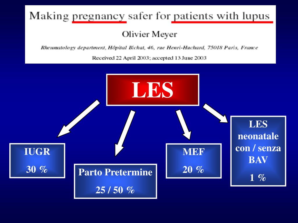 LES LES neonatale con / senza BAV 1 % IUGR 30 % MEF 20 % Parto Pretermine 25 / 50 %
