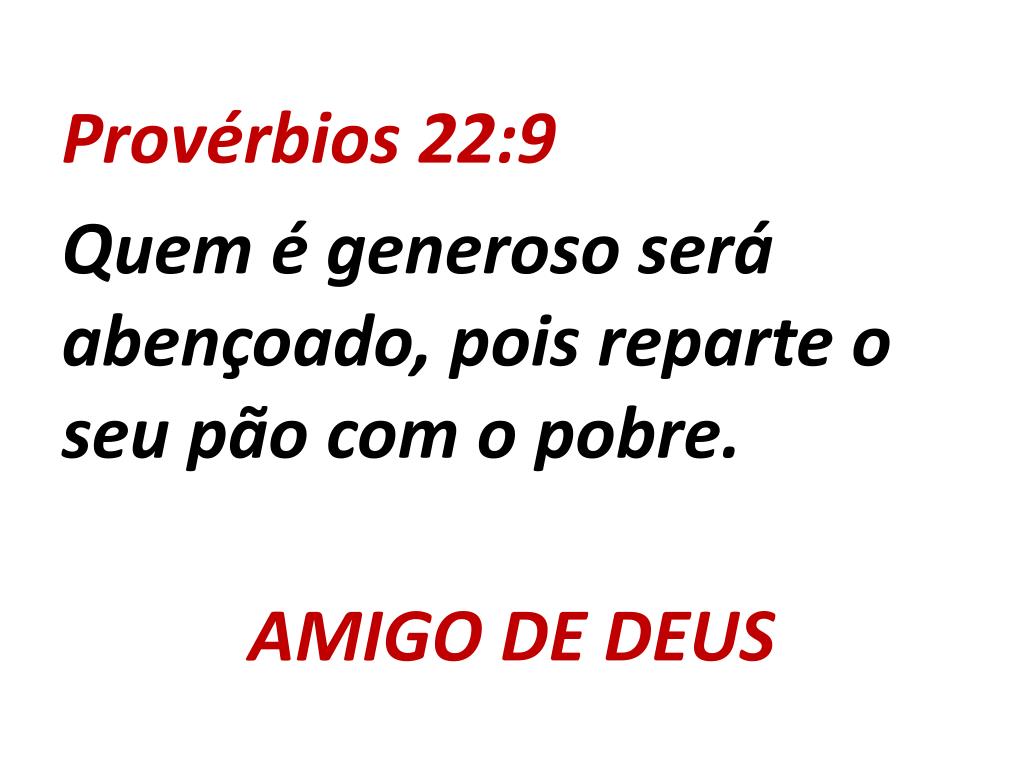 Provérbios 22:9 Quem é generoso será abençoado, pois reparte o seu pão com o pobre. AMIGO DE DEUS