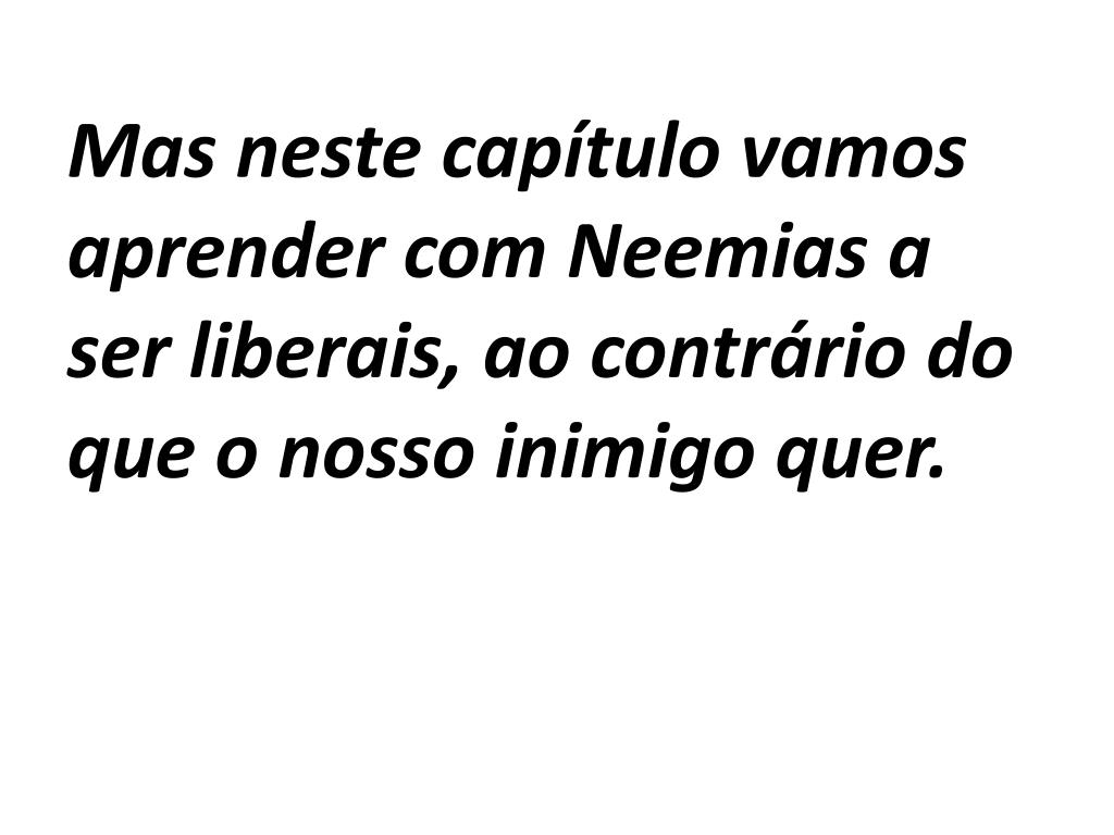 Mas neste capítulo vamos aprender com Neemias a ser liberais, ao contrário do que o nosso inimigo quer.