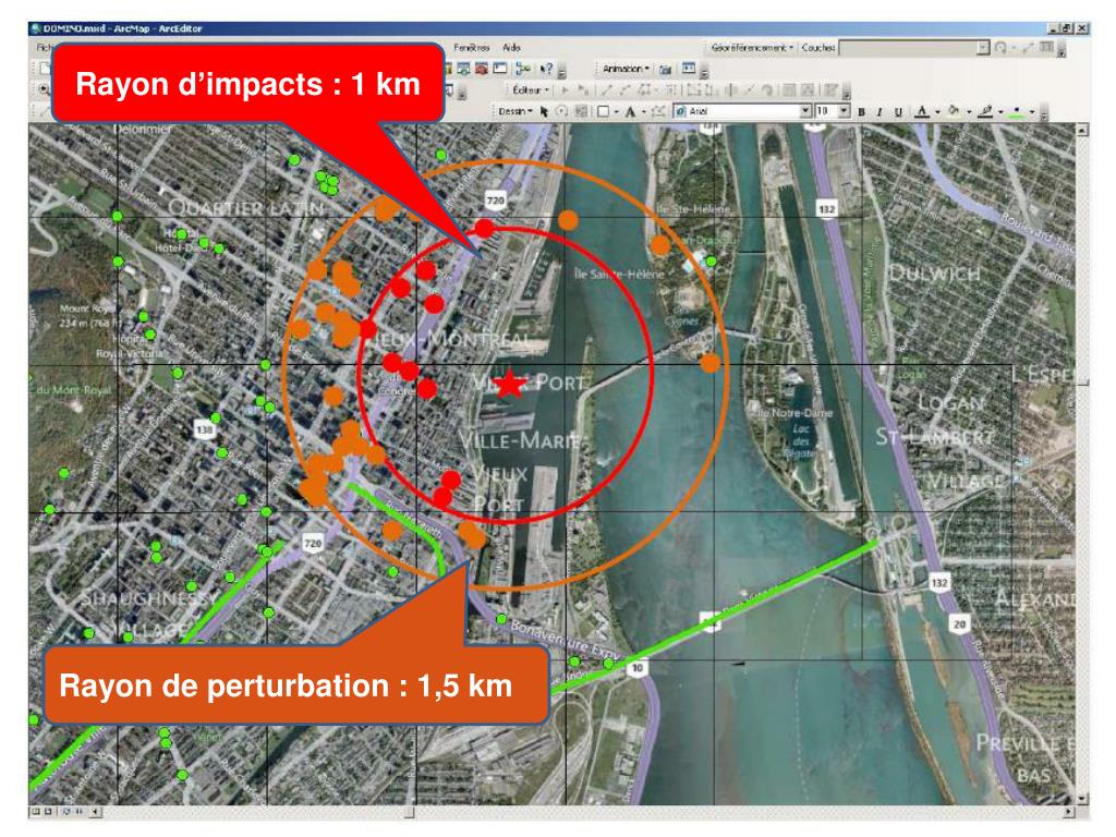 Rayon d’impacts : 1 km Rayon de perturbation : 1,5 km