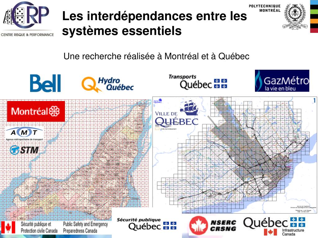Les interdépendances entre les systèmes essentiels Une recherche réalisée à Montréal et à Québec Zone géographique stratégique