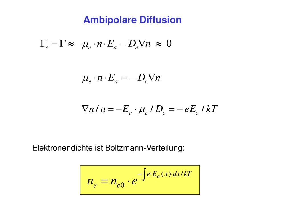 Ambipolare Diffusion Elektronendichte ist Boltzmann-Verteilung: