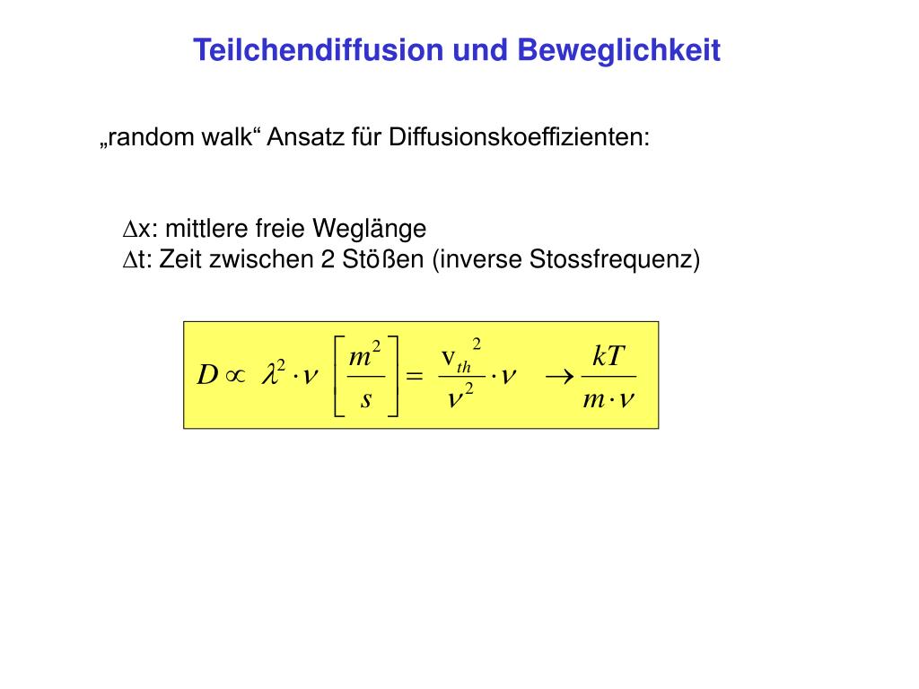 Teilchendiffusion und Beweglichkeit Diffusionskoeffizient stimmt mit dem aus „random walk“-Ansatz überein!