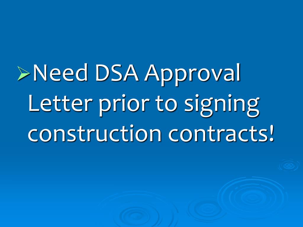 Need DSA Approval Letter prior to signing construction contracts!