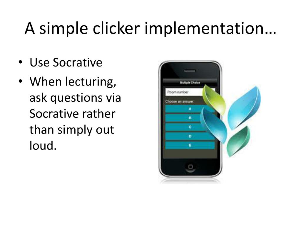 A simple clicker implementation… • Use Socrative • When lecturing, ask questions via Socrative rather than simply out loud.