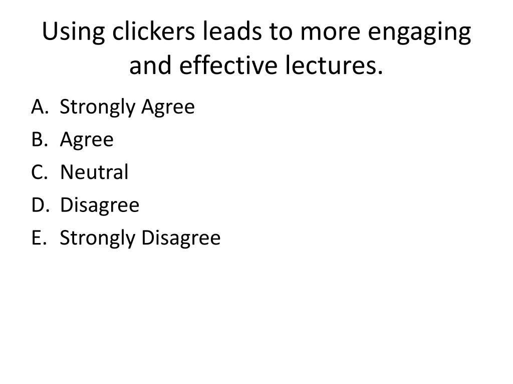 Using clickers leads to more engaging and effective lectures. • Strongly Agree • Agree • Neutral • Disagree • Strongly Disagree