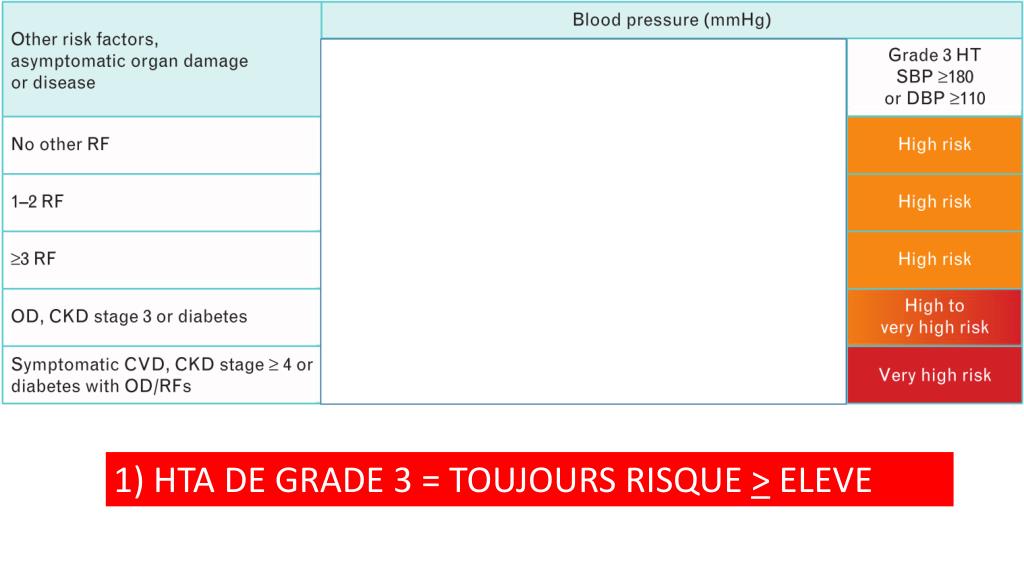 3) Si PAS >140 et/ou 90 mmHg et • >3 facteurs de risque CV • ou atteinte ‘organe cible’ • ou diabète = RISQUE ELEVE