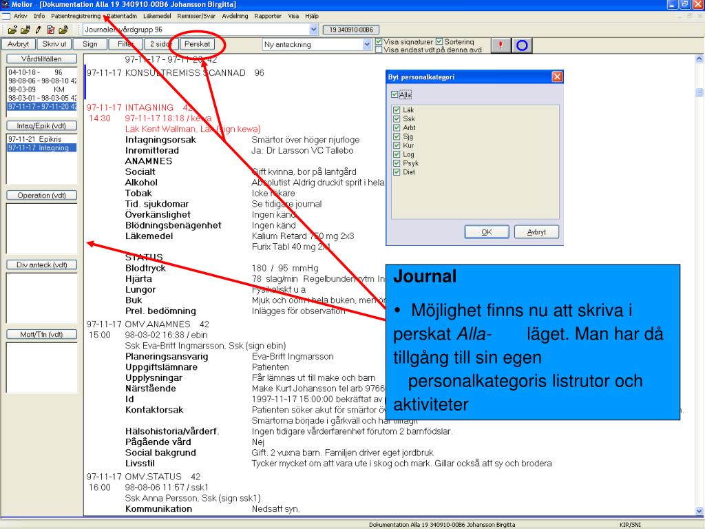 Journal • Möjlighet finns nu att skriva i perskat Alla- läget. Man har då tillgång till sin egen personalkategoris listrutor och aktiviteter