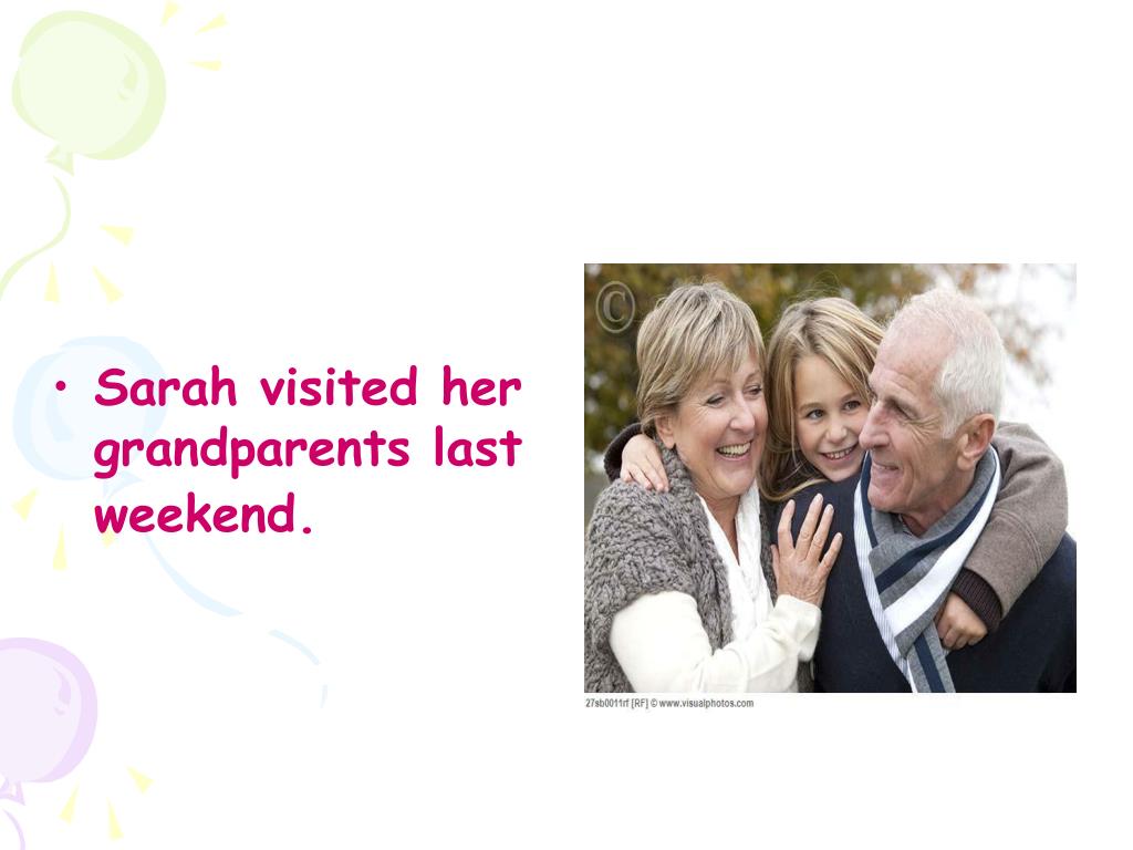 Sarah’s weekend. What did Sarah do last weekend?. Sarah visited her grandparents last weekend. First, she played with her dog. Then, she ate apples from the garden. After that, she helped her grandma in the kitchen. They made an apple pie. Finally, Sarah went to bed at 10 o’clock.