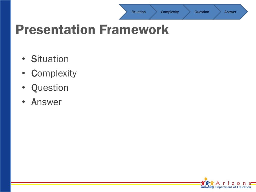 Situation Complexity Question Answer Presentation Framework • Situation • Complexity • Question • Answer