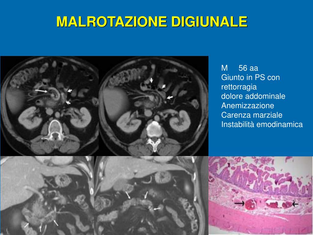MALROTAZIONE DIGIUNALE M 56 aa Giunto in PS con rettorragia dolore addominale Anemizzazione Carenza marziale Instabilità emodinamica