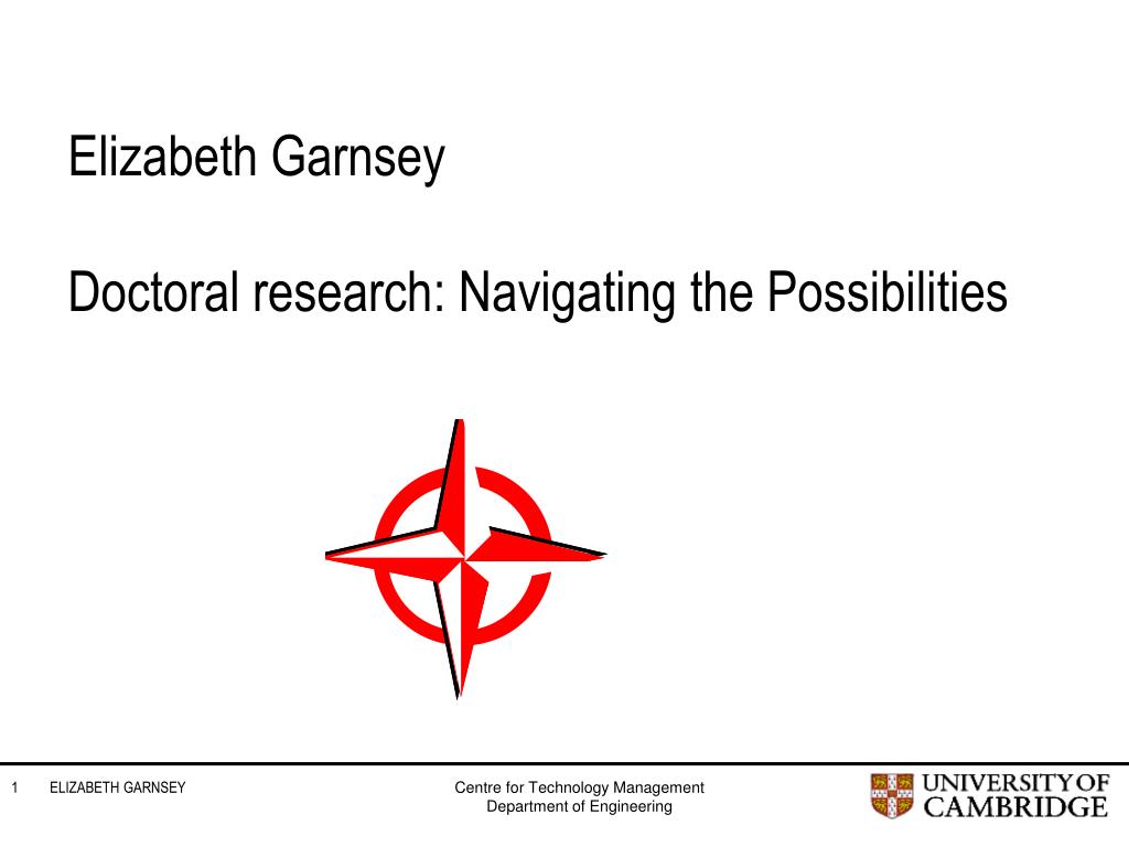 Elizabeth Garnsey Doctoral research: Navigating the Possibilities Centre for Technology Management Department of Engineering