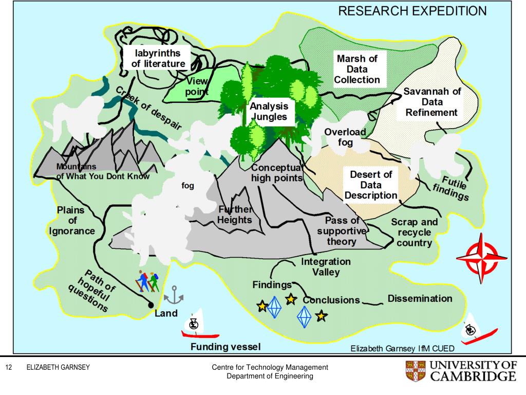 When progress is slow this may be in the nature of the terrain • Mountains of Ignorance to View Point • Marsh to Jungle and Back • Futile Findings to Scrap and Recycle • Terrain is re-trodden before Pass comes in view • Impasse and creative breakthrough Centre for Technology Management Department of Engineering