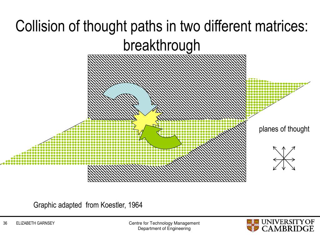 Collision of thought paths in two different matrices: breakthrough planes of thought Graphic adapted from Koestler, 1964 Centre for Technology Management Department of Engineering