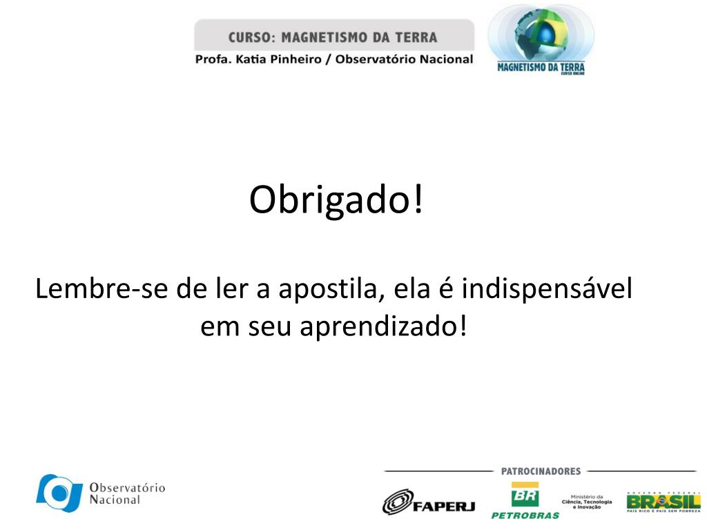 Obrigado! Lembre-se de ler a apostila, ela é indispensável em seu aprendizado!