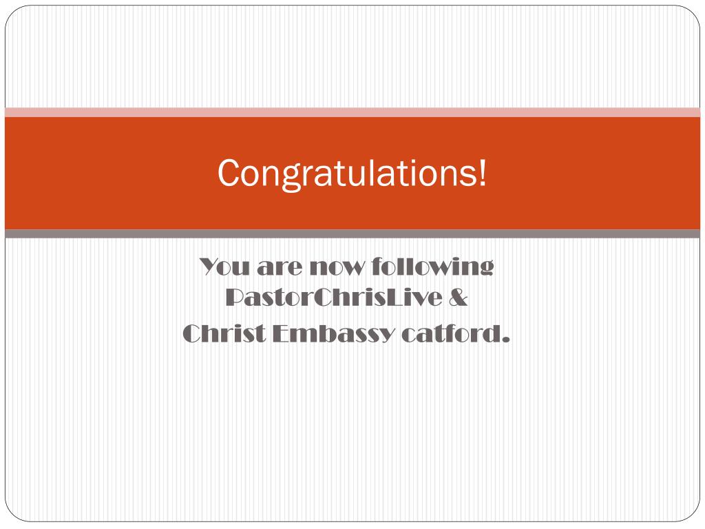 Congratulations! You are now following PastorChrisLive & Christ Embassy catford.