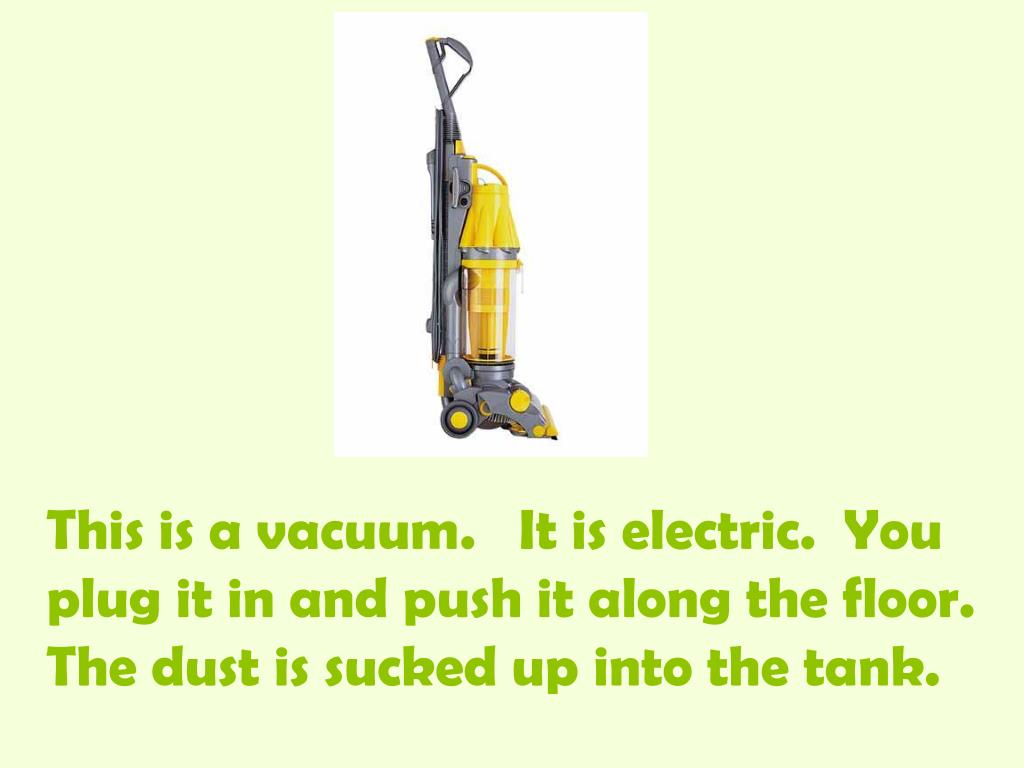 This is a vacuum. It is electric. You plug it in and push it along the floor. The dust is sucked up into the tank.