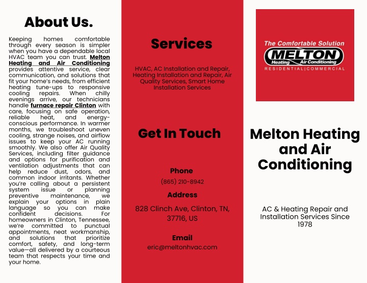 Address: 12106 Rossiter Ave, Sylmar, CA 91342 Phone: 818-212-9706 URL: http://freshairconditioningheating.com About Us: HVAC systems around the Sylmar area can be vastly different from building to building. Fortunately, being able to work on diverse HVAC setups is one of Fresh Air Conditioning and Heating's core strengths and weu2019re proficient with both commercial and residential settings. Our talented technicians have the experience to understand your particular HVAC needs and the ability to provide the best possible solution efficiently and effectively. For Sylmar, CA area installations and repairs, call Fresh Air Conditioning and Heating at 818-212-9706. Related Research Air Conditioning, Heating Service, Ductless A/C, A/C service, Duct service, A/C installation, HVAC service, A/C repair, Commercial A/C, A/C maintenance, Thermostat Service Additional Detail: 24/7 GMB Listing: http://g.page/fresh-air-conditioning-heating?share