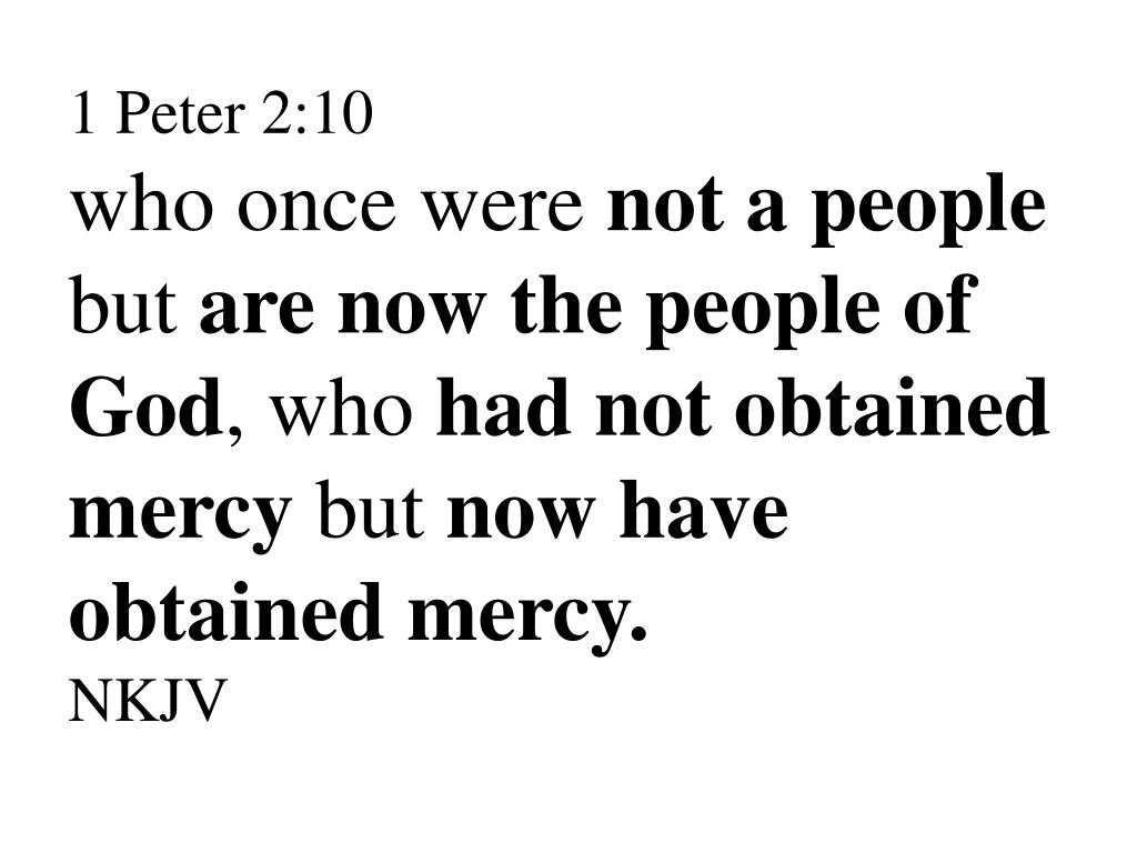 1 Peter 2:10 who once were not a people but are now the people of God, who had not obtained mercy but now have obtained mercy. NKJV