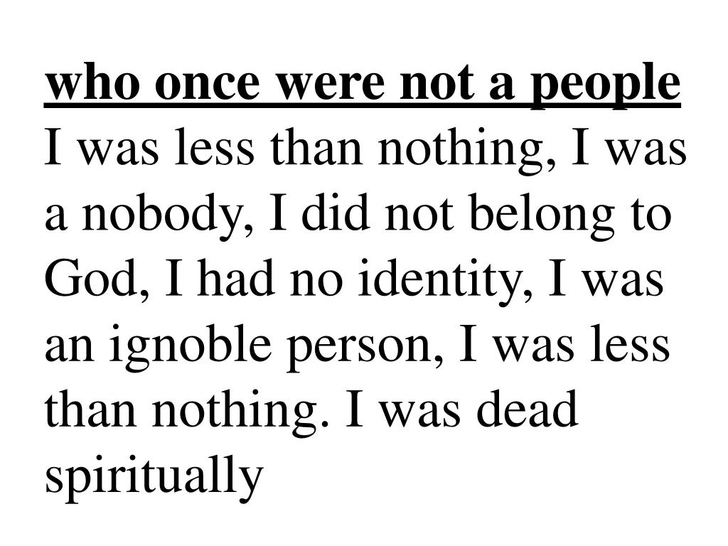 who once were not a people I was less than nothing, I was a nobody, I did not belong to God, I had no identity, I was an ignoble person, I was less than nothing. I was dead spiritually