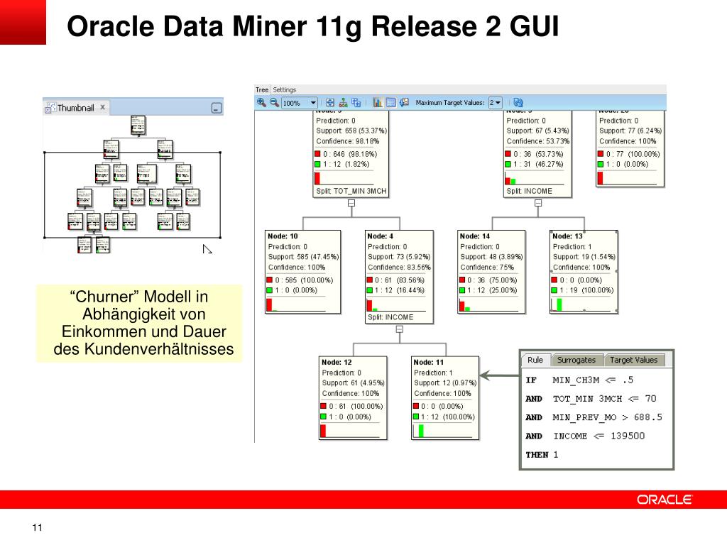 Oracle Data Miner 11g Release 2 GUI “Churner” Modell in Abhängigkeit von Einkommen und Dauer des Kundenverhältnisses